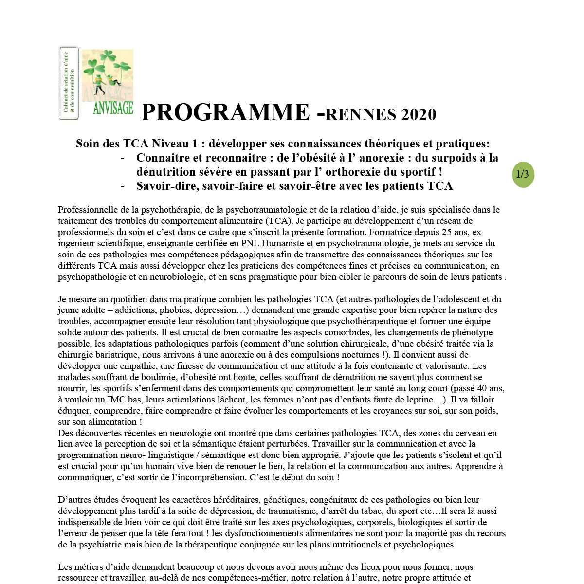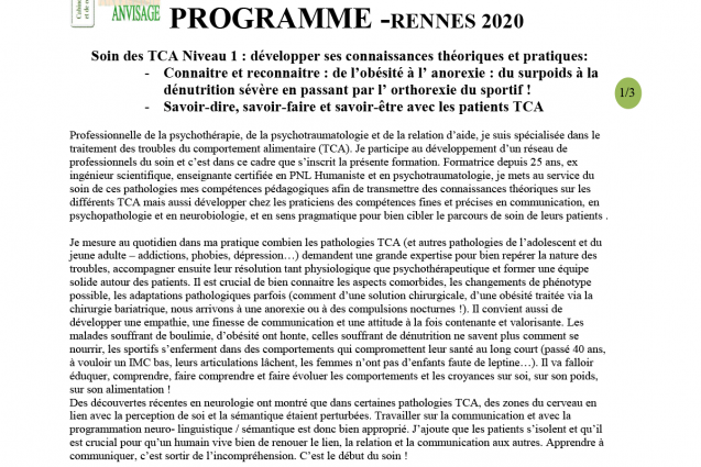 Formation troubles du comportement alimentaire à Rennes en 2020 destinée aux professionnels : psychologues, diététiciens, sophrologues, ostéopathes…